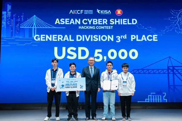 Các thành viên đội tuyển HCMACT.Akatsuki nhận giải Ba bảng General cuộc thi ASEAN Cyber Shield 2025